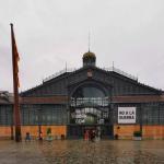 Am nächsten Morgen, schon war es Mittwoch, regnete es und die Temperaturen fühlten sich auch nicht gerade mediterran an. Immerhin trudelten unsere Tickets via Mail ein, so dass uns eine große Last vom Herzen fiel. Unser Tagesportier zeigte sich willig, diese später auch auszudrucken, von daher spazierten wir guter Dinge samt Regenschirm zum Frühstückscafé am Ende unserer Straße. Alsbald brachen wir auf, um die Gegend rund um die Sagrada Familia zu erkunden. Einige Jahre zuvor war ich sogar drinnen gewesen – bei Sonnenschein. Damals hatte uns ein strahlendes Licht einen unvergessenen Aufenthalt beschert, trotz der sündhaft teuren Eintrittspreise. Jetzt war es grau und nass und die Papageien am Arc de Triomf ließen sich auch nicht blicken. So spazierten wir durch den Regen, fotografierten Straßenkunst, wanderten durch eine überdachte Ausgrabungsstätte, futterten brauchbare Lomos und schlechte Crouqetas, entdeckten in einem Fanshop den Eintracht – Barcelona Spieltagsschal und konnten es kaum glauben. Die Eintracht wird morgen im Camp Nou zu einem Pflichtspiel auflaufen, und wir sind dabei. Schließlich landeten wir dann doch an der weltberühmten Kirche La Sagrada Familia, die seit 1888 gebaut wird und bis heute nicht fertig ist, obwohl gar keine Berliner am Bau beteiligt sind – soweit ich weiß. Aber beeindruckend ist das Gebäude in der Tat, auch wenn beim Blick nach oben Regentropfen in die Augen fielen.