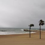 Jetzt waren viele Shops geschlossen, die schweren Rollläden mit Graffiti verziert, doch trotz der frühen Uhrzeit waren wir nicht alleine unterwegs, so richtig schien die Stadt nie zu schlafen. Wir frühstückten gemütlich und trieben dann runter ans Meer. Während unten am Hafen einige Yachten im Wasser schaukelten und die Bars und Restaurants eher hochpreisig wirkten, zeigte sich das angrenzende Barceloneta eher düster. In geraden Linien zogen die sich Straßen symmetrisch durchs Viertel, dahinter ergossen sich die Stadtstrände gen Norden. Eine frische Brise wehte uns um die Ohren und wir wussten nicht, ob die nieselnde Feuchtigkeit vom Meer oder vom Regen kam. Die Palmen neigten sich kopfschüttelnd im Wind und das Mittelmeer tobte für seine Verhältnisse mächtig. Wir spazierten die Promenade entlang, am Strand jedoch lag niemand. Immerhin präparierte ihn ein mit Sand beladener LKW, um für den kommenden Sommer angemessen gerüstet zu sein.