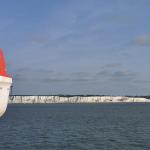 Gute anderthalb Stunden nach Ablegen konnte ich ich am Horizont die weißen Felsen entdecken, die mit jeder Minute näher kamen. Ich stand oben alleine, rauchte, blickte auf die Felsen, ein Wind zerzauste meine Haare – und war für einen kurzen Moment eins mit der Welt. I can see the lights of Dover through the night …