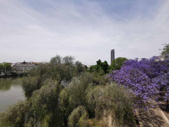 Wir frühstückten wie schon gestern im mo.ma, diesmal unter freiem Himmel und konnten von unseren Stühlen aus das geschäftige Treiben eines temporären Flohmarkts beobachten. Eine fröhliche Kellnerin brachte uns Toasts und Café, wir futterten wie die Großen und ließen uns dann durch Sevilla treiben, bewunderten die violetten Blüten, spazierten noch einmal über den Fluss, trafen Mitch, der ebenfalls noch durch die Stadt tigerte, ließen uns von den Düsen der Schattendächer der Restaurants mit Wasserdampf besprühen und kehrten ein letztes Mal im Café bei Santa Ana ein. Als die Zeit gekommen war, packten wir frisch geduscht unsere Habseligkeiten zusammen und wanderten durch die gekühlte Markthalle zum Busbahnhof. Im dortigen Restaurant, das den Charme aller Busbahnhofrestaurants aufwies, tranken wir einen letzten Café con Leche. Die elektronische Anzeigetafel verwies auf die Abfahrtsspur und -zeit und mit den Minuten wurde es immer voller. Hie und da gratulierte uns ein Schotte zum Sieg, die Stimmung war entspannt. Wir rauchten draußen noch ein Kippchen – dann kam er. Basecap, langer Bart, blaues Trikot und sangesfreudig. In brüllender Lautstärke schmetterte er unverständliche Schlachtrufe, animierte die Umstehenden, es ihm gleich zu tun und war ohrenscheinlich gut gelaunt. Damit war klar, wer bei uns im Bus mitfahren sollte – und es war auch klar, wo er sitzt. Natürlich. Sein Kumpel, lautes Organ, nagelneue Zähne zog mit ihm ein. Und so saßen pünktlich um 18:30 Uhr knapp 50 Leute im Bus, wovon 46 schwiegen. Der bärtige wanderte hinter zu uns, klopfend, singend, der andere kauderwelschte mit keckerndem Lachen in einer Lautstärke, dass du über den Kopfhörer das gelesene Wort nicht mehr verstandest. Von Sevilla bis Faro. Sie hockten sich in die vorletzte Reihe und schotteten vor sich hin. Völlig friedlich. Aber nervig bis ins Mark, zumal sie noch ein paar Kameraden fanden, die mitspielten. Wenigstens hatten sie kein Bier dabei, um der Sache noch ein bisschen mehr Drive zu geben. Wir rollten an, ein letzter Blick auf Sevilla. Augen zu und durch. Blablabla FOCKING Blablabla FOCKING Blablabla FOCKING SINGSINGSING FOCKING. BLABLABLA … Es war die Hölle. Und wir wussten nun, was „abschotten“ wirklich bedeutet.