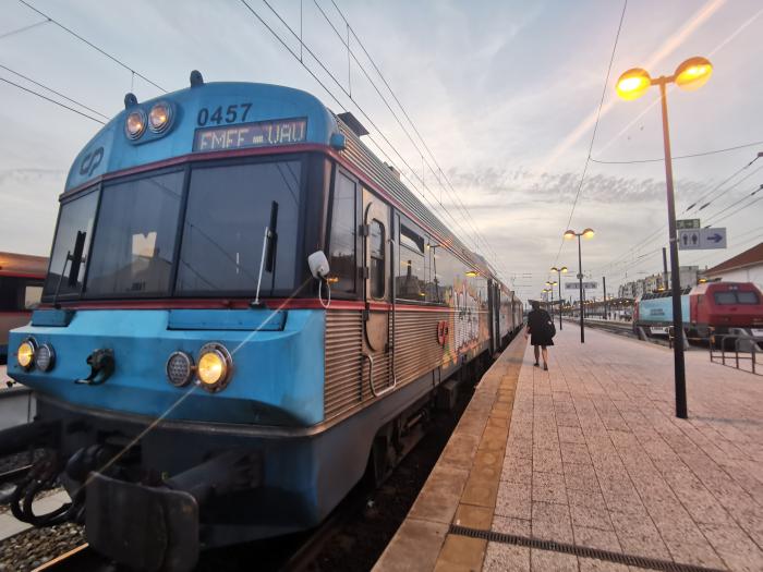 Die Strecke zog sich, doch wir überquerten nach einer Weile den Guadiana und waren zurück in Portugal. Ich blickte aus dem Fenster, sah Esel und Störche an mir vorüberziehen, Monte Gordo, die Ria Formosa, Tavira, Olaho, Faro, Pia hatte gecheckt, dass kurz nach unserem Halt in Faro ein Zug nach Fuseta abfahren sollte. Kaum landeten wir am Busbahnhof, schnappten wir unser Gepäck, flutschten schnell wie Wind aus dem Bus und eilten zum eigentlichen Bahnhof. Gute zehn Minuten bis zur Abfahrt der Bahn. Wir stellten uns am Ticketschalter an. Dort standen zwei Passagiere vor uns. Am Schalter selbst waren zwei Damen ins Gespräch vertieft, die Minuten zerrannen wie flüssiges Blei. Es schien, die Damen wollten mit dem Zug bis Flensburg reisen und planten mit dem Bahnangestellten die Reise durch, wie auch immer. Die junge Frau vor uns wurde ähnlich nervös wie wir. Kurz vor Toresschluss wanderten die beiden ersten zur Seite, alle anderen holten sich binnen Minuten ihre Tickets und sprinteten zum Zug, der noch weitere fünf Minuten warteten sollte. Dann setzte sich der silberblaue Koloss in Bewegung. Und natürlich konnte man auch die Tickets beim Schaffner im Zug kaufen. Ich blickte aus dem Fenster. Mit jeder Minute und jedem Stopp kam Fuseta näher, rechter Hand die Blicke auf die Ria Formosa. In Fuseta A stiegen wir aus und wanderten ein paar Minuten hoch zum Hotel. Aus der Kirche gegenüber drang Gesang und Weihrauch. Unser Zimmer war aufgeräumt, wir fühlten uns wieder zuhause. Ums Eck gab es noch eine Fischsuppe und einen Vinho Verde, dann wanderten wir am Kanal an den sachte schaukelnden Booten vorbei an den Strand. Ruhe. Endlich Ruhe. FOCKING STILLE. Auf der Dachterrasse gönnten wir uns einen Absacker und schliefen als Europapokalsieger ein. In Frankfurt hatten sie derweil den Tag zur Nacht gemacht und waren vor Freude durchgedreht. Nur OB Peter Feldmann kam dabei nicht ganz so gut weg. Und die Tagesflieger waren auch alle wieder sicher gelandet