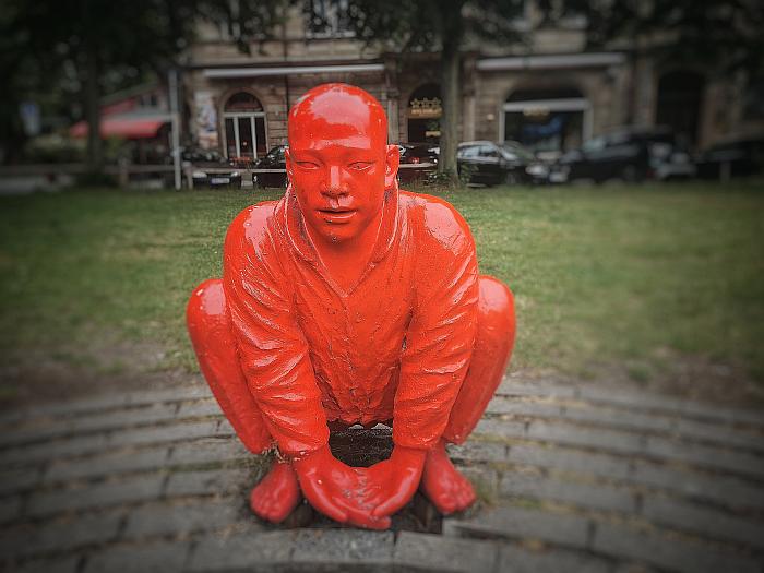 Wir hingegen haben Blut geleckt, früh am nächsten Morgen machen wir uns auf die Socken. Unser Ziel: Bamberg. Erneut bringt uns die 18 zum Südbahnhof, der Main-Spessart-Express, RE 55, wartet schon, es herrscht reger Betrieb – aber wir finden zwei Sitzplätze nebeneinander, leider nicht mit direktem Blick aus dem Fenster. „Auf Grund eines Maskenverweigerers verzögert sich die Abfahrt auf unbestimmte Zeit“ klingt es aus den Lautsprechern des Zuges. Und so ist es auch, zwanzig Minuten später stehen wir immer noch. Unser Gegenüber, ein Herr mittleren Alters, tätig im Gastronomiegewerbe, zeigt dafür nur bedingt Verständnis. Er murmelt etwas von „Diktatur“ und beginnt ein Gespräch über den Unfug von Masken und gefälschten Zahlen von Bettenbelegungen. Ich lasse die Worte an mir abperlen, drehe meinen Kopf und versuche aus dem Fenster zu schauen. Immerhin trägt mein Gegenüber eine Maske, an ihm liegt es nicht. Die Zugbegleiterin, rauscht durch die Waggons, zeigt sich leicht genervt und weist einen jungen Mann darauf hin, die Maske ordentlich aufzuziehen. Eine Bitte, der der Kamerad nachkommt, obgleich er an einem Kaffee nuckelt. Mein Gegenüber will zum großen Palaver ansetzen, die Zugbegleiterin lässt sich davon nicht beeindrucken und rauscht wieder ab. Dann rollt auch der Zug an, mit 25-minütiger Verspätung geht es nun in Richtung Oberfranken. Pia liest, ich höre mir über Kopfhörer ein Hörbuch an. Mit jedem Halt stolpern ein paar mehr Leute ein den Zug. Irgendwo vor Hanau setze ich mich eine Reihe nach unten und kann aus dem Fenster schauen. Eine adrette Familie mit zwei Kindern steigt dort zu und findet, wie einige andere auch, zunächst keinen Sitzplatz. Blicke fliegen hin und her, Möglichkeiten werden erwogen und wieder fallen gelassen. Grüne Hecken umsäumen die Gleise, während wir dahin rollen. In Aschaffenburg kommt noch einmal Bewegung in die Sache. Zunächst verabschiedet sich der Grantler vom Südbahnhof recht freundlich, dann wird es verhältnismäßig voll. Die Familienkinder haben derweil einen Sitzplatz gefunden und daddeln auf ihren Handys. Andere stehen im Gang. Aber der Zug ist nicht rappelvoll. Ein älteres Ehepaar scheint ständig auf dem Sprung zu sein, Unruhe blitzt in ihren Augen. Wir fahren durch den grün behügelten Spessart, passieren Gemünden und landen letztlich in Würzburg. Dort leert sich die Bahn rapide. Wir nutzen die Gelegenheit und setzen uns an einen Vierer-Tisch mit wunderbarem Fensterblick und rauschen durchs schöne Frankenland. Das Handy hängt an der Steckdose. Trotz des längeren Aufenthaltes in Würzburg sind wir wieder exakt in der angegebenen Zeit. Haßfurt und Schweinfurt heißen die letzten beiden Stationen vor Bamberg, Endstation, alles aussteigen. Oktoberfestartig gewandete Menschen kommen uns entgegen, in der Hand einen Bierseidl. Pfingstsonntag in Oberfranken. Wir besorgen uns in einem Bahnhofscafé einen Bahnhofscafé und spazieren auf den Vorplatz. Hallo Bamberg.