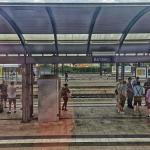 Am Südbahnhof keine Zeichen von Hysterie. Außer bei mir, der zunächst runter zur U-Bahn marschiert, um anschließend festzustellen, dass mein Zug von den Gleisen oben abfährt. Brav stelle ich mich ans Gleis, der Zug Richtung Würzburg wird schon auf der elektronischen Anzeigetafel angekündigt. Als er einige Zeit später noch nicht da ist, checke ich die App. Jetzt wird mir ein anderer Zug vorgeschlagen, Abfahrt 20 Minuten später. Gleis 8. Verwirrung macht sich breit, ich wandere die Stufen nach unten, am entsprechenden Gleis wieder nach oben. Da steht es: Abfahrt RB 58 nach Laufach. Der erste Zug rollt, nachdem er kurzzeitig von der elektronischen Bildfläche verschwunden war und nun wieder angekündigt wurde, mit 15-minütiger Verspätung ein – und ohne mich wieder ab. Ich warte auf Gleis 8, mit mir steht dort nur eine handvoll Menschen, ich fühle mich dezent an eine Europapokalreise erinnert. Der RB 58 ist pünktlich, ich erhasche einen Platz am Fenster Richtung Fahrtrichtung und wir legen ab. Fahren über Frankfurt Ost, Mainkur und Maintal Richtung Hanau. Keine besonderen Vorkommnisse, außer dass ein nicht mehr ganz so junger Mann die Bahn mit seinem Office verwechselt, seine Gesprächspartnerin auf Laut gestellt und wichtige Dinge zu klären hat. Ich nehme mir vor, das nächste Mal die Texte zu protokollieren und rolle über Hanau und die Rückertsbacher Schlucht nach Kleinostheim. Damit sind meine 9 Euro für das Ticket schon wieder drin. Auch der Rückweg ist unkompliziert. Kaum bin ich wieder am Bahnhof gelandet, rollt die Bahn ein, ich sprinte zum richtigen Gleis – und sitze diesmal mit dem Rücken am Fenster und schaue mir die gegenübersitzenden Fahrgäste an. Das beste am Bahnfahren ist es jedoch, den Blick aus dem Fenster auf die Miniaturwelt draußen zu werfen, die Graffiti, die Gebäuderückseiten, die Schrebergärten, das Gleisgewimmel an größeren Bahnhöfen, die wartenden Autos an den Schranken. Überall lauern Geschichten, die nie erzählt werden. Die 18 bringt mich wieder nach Hause.