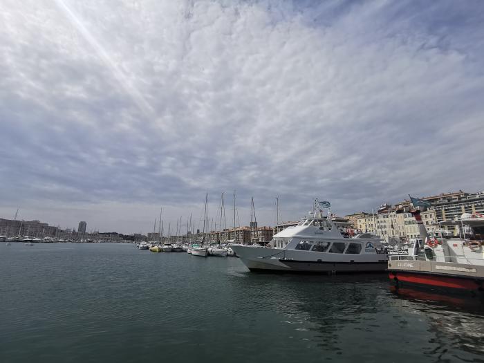 Die Hafenstadt am Mittelmeer empfängt uns mit milden Temperaturen aber diesig. Der Fahrer eines Transporters hängt einen Olympique-Schal aus dem Fenster als er uns aus dem Rückspiegel erkennt, wir fallen auf. Die geplante Route wird ob der Höhe unserer Busse kurzfristig geändert mit 3,90 Metern kommst du nicht überall durch und so schieben wir uns zwischen Hochhäusern und graubraunen Gebäuden runter Richtung Fährhafen, stehen in Staus, erste Mittelfinger werden uns entgegen gereckt, es werden nicht die letzten sein. Entweder zücken sie ihre Handys oder begrüßen uns freundlich mit dem Gruß der Unfreundlichen.