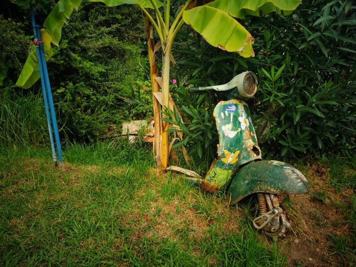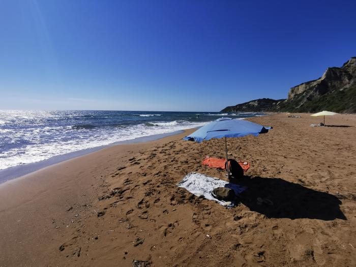 Doch wohin? Asien war für 14 Tage zu weit, die Unterkünfte in Portugal so teuer wie guter Rat, zumal ich diesmal keine Lust auf Abenteuer und Eventualitäten hatte, sondern schlicht meine Ruhe haben wollte. Da wir vor vier Jahren schon einmal auf Korfu eine gute Zeit verbrachten und unsere Umgebung im Süden der Insel genau unseren Anforderungen entsprach (Ruhe, Natur, Meer, wenige Menschen), buchten wir kurzentschlossen 13 Tage in der alten Unterkunft samt Flug – für einen Preis, der dich auch mit dem Tagesflieger der Eintracht für 24 Stunden zu einem europäischen Auswärtsspiel bringt. Doch so richtig freuen konnte ich mich vorerst noch nicht auf die Reise, ich war einfach zu gestresst, außerdem stand noch das Problem mit dem Mietwagen im Raum. Diese sind zur Zeit vor Ort ziemlich teuer – ergo verschoben wir die Entscheidung bis zum letzten Moment. Im Flugpreis war zwar der Shuttle vom Airport zur Unterkunft und retour mit drin, doch unser Appartement liegt ziemlich abgelegen. Den einen Kilometer bis zur nächsten kleinen Ortschaft würden wir zu Fuß ebenso schaffen, wie den zwanzigminütigen Weg durch Olivenhaine zum sich über 2000 Meter hinziehenden und nahezu menschenleeren Sandstrand, hinter dem die Hügel der grünen Insel in die Höhe wachsen. Doch ein bisschen Unterwegssein wäre schon schön, zumal der hiesige Bus uns im einige Kilometer entfernten Perivoli ausspucken würde. Eigentlich brauchst du mindestens einen 125 ccm Roller oder ein kleines Auto – und da die Tendenz auch Regen versprach, neigten wir zur Anmietung eines Autos.
