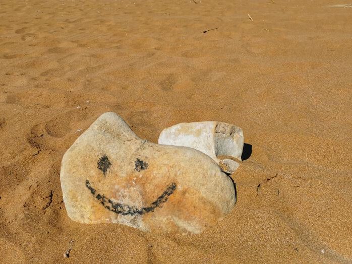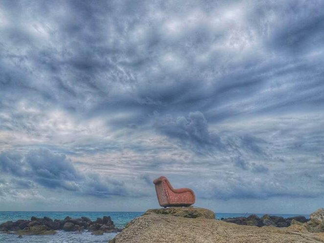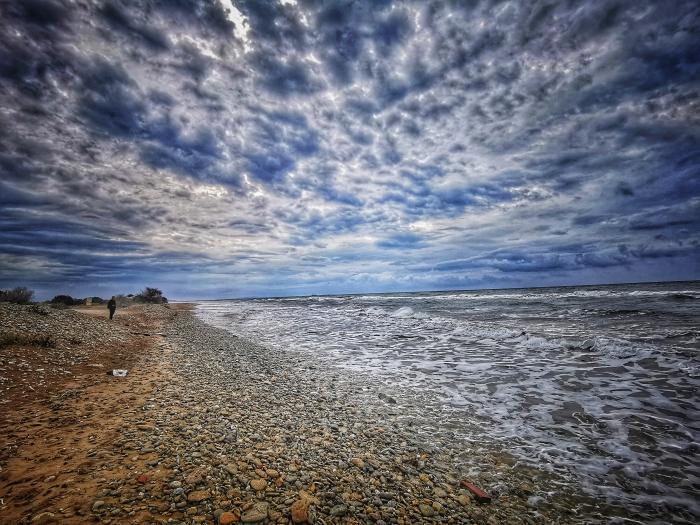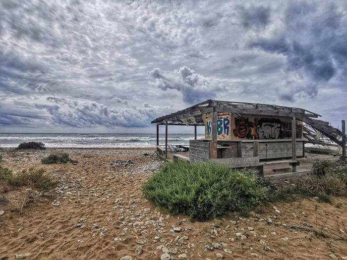 Als Manuel und Julia (dessen Frau und nicht die Taverne) abreisten, trauerte das Wetter und es regnete. Doch nicht wirklich tragisch und nicht lange, wir fuhren in das Naturschutzgebiet zum Lake Korrision, und die weißen Punkte im See waren keine Bojen, sondern … Flamingos. Pia konnte ihr Glück kaum fassen. Am Kanal weiter hinten, der den See mit dem Meer verbindet, hat ein Jemand einen Sessel auf die Felsen gebunden. Ein schöner Platz zum Verweilen. Hie und da stand ein Wohnmobil in den Dünen, das gehört da eigentlich gar nicht hin. Auf dem Parkplatz am Rand musst du dein Auto inmitten all der weißen Mietwagen suchen. Alle Mietautos auf der Insel sind weiß und klein, das macht die Sache trotz der Nebensaison nicht einfacher, doch wir hatten Glück und entdeckten immer das richtige Auto . Hinten bei Prasoudi oder Paramonias hat es schöne Wellen, allein die Taverne Sunset ist weniger zu empfehlen. Zumindest die Fischsuppe. Die war ein Elend. Fischsuppe ohne Fisch ist länderübergreifend eher selten, solltest du so etwas suchen, hier wirst du fündig.