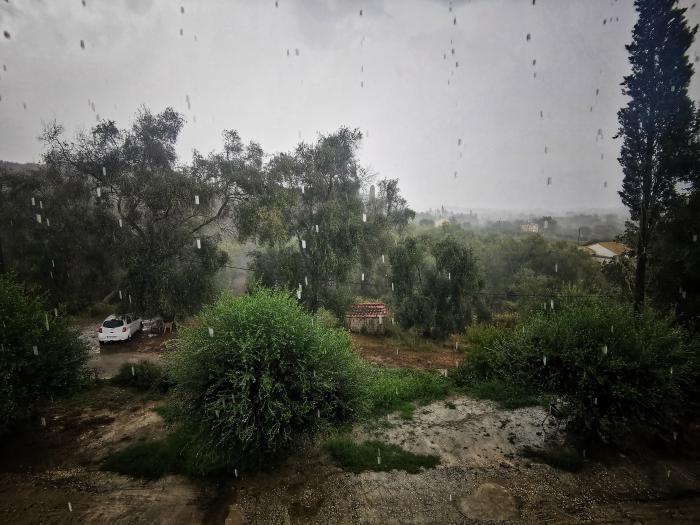 Am Flughafen in Korfu wartete tatsächlich unser Shuttle zur Abholstation, mit zwei Schwäbinnen wurden wir zum nur wenige Hundert Meter entfernten wenig pittoresken Parkplatz kutschiert, erledigten die Formalitäten, fotografierten den Wagen samt Kilometer- und Tachostand. 65.000 gefahrene Kilometer wies dieser aus, die alle mit den gleichen Reifen absolviert wurden und eine neue Kupplung verdient hätte – ein weißer Nissan Micra, der seltsame Geräusche von sich gab, als wir losrollten – aber ansonsten manierlich schnurrte. Kurz quälten wir uns bei Sonnenschein durch Korfu-Stadt, dann ging es mit offenem Fenster auf die Küstenstraße Richtung Süden. Unser Ziel lag 35 Kilometer und eine gute Fahrstunde entfernt an der Westküste. Wir sausten durch Benitses, einem Urlaubsort an der Küste, neben der Straße die Hotels und Souvenirbuden, hinter der Straße der schmale Strand. Urlauber warteten an der Bushaltestelle oder schlurften in Flipflops die vielbefahrene Hauptstraße entlang. Das Meer lachte uns an, im Himmel schwebten die nächsten Flieger ein. Zwischen Moraitika und Mesongi verließen wir die Ostküste und tuckerten durch kleine Ortschaften, bis wir unseren Weiler erreichten. Ältere Korfioten saßen vor dem Café und beschwatzten den Tag, wenige Meter dahinter hielten wir an, besorgten uns im liebevoll eingerichteten Minimarkt, der seinen Namen auch wirklich verdient, Honig und Joghurt, Wasser und Antistechmücken-Spiralen, tranken eine eiskalte Cola und rollten anschließend Richtung Strand. Auf halben Weg lag unsere Unterkunft, ein Haus mit vielen Balkonen, sieben Zimmern inmitten eines Grüns – trotz der Tatsache, dass es ein halbes Jahr so gut wie nicht geregnet hatte. Vassilis begrüßte uns herzlich, erkannte uns aber wie Georgia nicht wirklich wieder, und führte uns ins obere Stockwerk. Diesmal hatten wir sogar ein Appartement mit zwei Räumen und Balkonen. Einen an der Straße mit Blick über die Straße in waldiges Grün, der andere mit Gartenblick, dort, wo sich die Katzen tummeln. Das Motto des Hauses teilte uns Vassilis wie schon beim letzten Mal grinsend mit: Hier verboten Stress. Verboten Problem. So soll es sein. Wir luden unser Gepäck aus und stellten den Micra auf den kleinen Parkplatz auf die andere Straßenseite, bewacht von Olivenbäumen, die in der Sonne silbrig glänzten. Anschließend verstauten wir unsere Habseligkeiten, brühten einen Tee auf, setzten uns rauchend auf den Balkon und ließen den Blick in die grünen Hügel der Insel rund um uns schweifen. In der Ferne bellte ein Hund.
