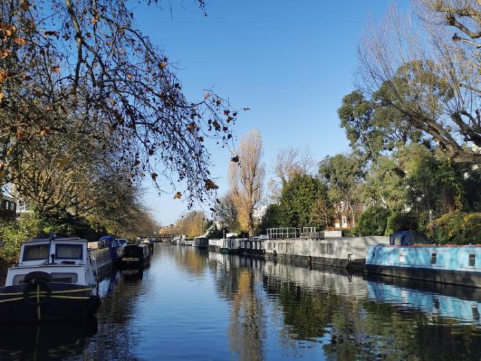 Zunächst treiben wir runter zum Kanal und an dort dümpelnden Hausbooten vorbei Richtung Little Venice. Blauer Himmel wacht über uns, mächtige, in die Höhe schießende Bauten kündigen Paddington an. London ist an vielen Ecken seltsam verbaut – Menschen hasten vorüber, einen Kaffeebecher in der Hand, wir fotografieren einen Paddington Bär vor dem Bahnhof, einen anderen im Bahnhof und verlassen den belebten und unwirtlichen Platz Richtung Notting Hill, schlendern die bunte Portobello Road nach unten, futtern Lamm-Samosa und treffen weder Hugh Grant noch Julia Roberts. Auch kaufen wir keine alten Bücher auf dem langgezogenen Markt. Auf dem Weg nach Shepherds Bush kommen wir am Grenfell-Tower vorbei, wo im Juni 2017 bei einem verheerenden Großbrand 72 Menschen elendig verbrannten. Eine Gedenkstätte erinnert an die Menschen, die in dem Sozialwohnungsobjekt trotz vorheriger Warnungen ihr Leben lassen mussten.
