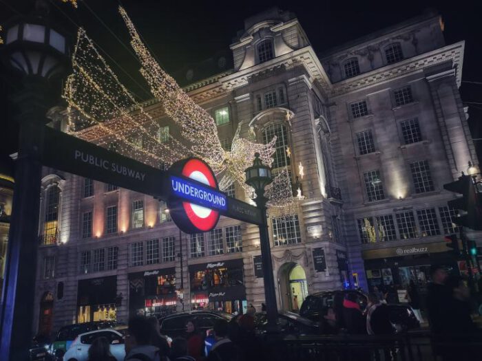 Wenig später nehmen wir die Bakerloo Line Richtung Oxford Circus. Und während du in Frankfurter Bahnen alle Absonderlichkeiten menschlicher Verhaltensweisen beobachten kannst (angefangen vom Massengedrängel und Manspreading über Taschen auf den Sitzen bis hin zu lautem Geschnatter und Füßen auf den Plätzen) sitzen oder stehen die Menschen in London mehr oder weniger ruhig auf ihren Plätzen und starren vor sich hin, bis sie an ihr Ziel angekommen sind und recht achtsam aussteigen. Oben am Oxford Circus ist die Hölle los.