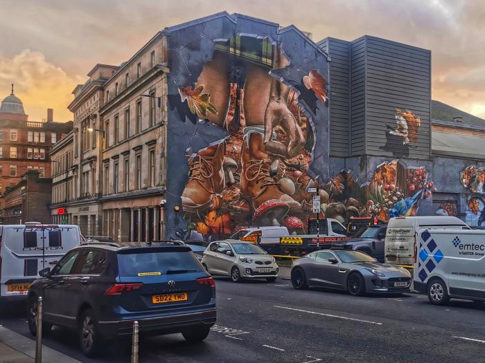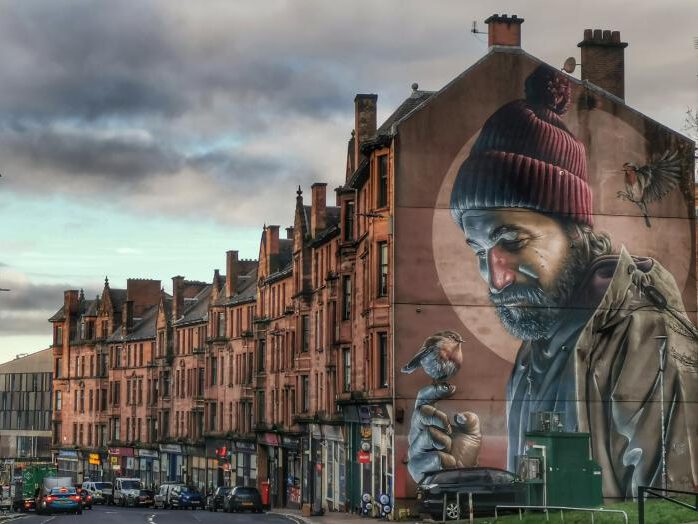 Glasgow ist bekannt für seine Murals, die uns in der Tat auch häufiger begegnen als Kilt oder Dudelsack. Die Schott:innen tragen heutzutage Jeans und Turnschuhe, erstaunlicherweise jedoch häufig kurze Hosen und T-Shirt. Die Glaswegian sind wahrlich nicht aus Zucker. Und wie heißt es so schön: In Schottland gibt es zwei Jahreszeiten. Juni und Winter. Der Akzent hingegen ist hart. Ich weiß noch, wie ich vor ein paar Jahren in der Alten Oper bei einem Konzert von Amy Macdonald saß, die ja aus Glasgow stammt und ihren Ansagen lauschte. Ich verstand kein Wort, aber das Gesamtpaket, Tattoos, Dialekt, Auftreten hat mich schwer beeindruckt. Mit Roughness gepaart mit schwarzem Humor und unaufgeregter Beauty kriegst du mich.
