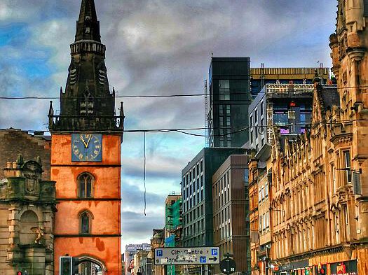 Wenn du mit wachen Augen durch Glasgow marschierst, fallen vor allen die Widersprüche auf, der Bettler vor Marks & Spencer, die alten viktorianischen Bauten neben den hochmodernen Glasfassaden, die Streetart neben der Reklame, die mondäne Buchanan Street neben der Bahnhofsunterführung oder die verwirrenden Ensembles rund um Glasgow Cross. Vergangene Vergangenheit, jüngste Vergangenheit und Gegenwart mengen sich zu einem lebendigen Ganzen, selbst mächtige Orte wie die Kathedrale fallen im Gesamtwerk Glasgows kaum auf und der Clyde, der hiesige Fluss, mäandert mit einem unaufgeregtem Selbstbewusstsein durch die Stadt. Glasgow – Eine Stadt für Fotograf:innen.