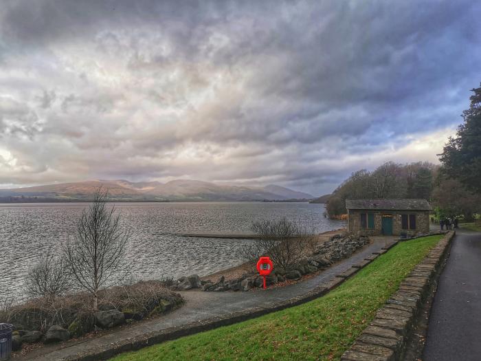 Einige Bootchen liegen vertaut auf dem Leven, auch hier einige halb versunken, rechter Hand thront versteckt das Balloch Castle, während wir uns gemächlich auf den See schieben und sich vor uns zaghaft die Highlands erheben. Links, dort wo einst eine Jugendherberge den Glasgow Kids Sommerfrische versprach, wässert nun ein Flugzeug des Golfclubs, so verschiebt sich auch hier die Zeit. Der See und die Wolken hingegen zelebrieren für uns ein wunderbares Schauspiel, bis wir an einer bewohnten Insel umkehren und nach einer guten Stunde wieder in Balloch festmachen. Anschließend drehen wir fußläufig eine Runde am Ufer, kommen am gesperrten Balloch Castle vorbei und landen im Mavi neben dem Fisch Restaurant Blue Lagoon. Zwei Männer in AC/DC Weihnachtspullovern sorgen sich um die meist weiblichen Gäste, der ganze Laden veströmt einen zeitlosen Charme – als das Handy noch nicht erfunden und dunkles Türkis noch eine erlaubte Einrichtungsfarbe war – kurz, ein Ort zum Wohlfühlen. Später drehen wir noch eine Runde auf der anderen Seite des Leven, wo ein Kiosk samt Lichterkette auf Kundschaft wartet – doch wir sind mutterseelenalleine hier. Gegenüber liegt die Maid of the Loch, der letzte auf dem Loch Lomond verkehrende Raddampfer, aufgeslippt und reperaturbedürftig. Nach einem kurzen Blick in den Souvenirshop rollen wir in aller Seelenruhe wieder zurück nach Glasgow, das übrigens nicht die schottische Hauptstadt ist. Diese heißt Edinburgh und spielt auf unserer Reise keine Rolle.