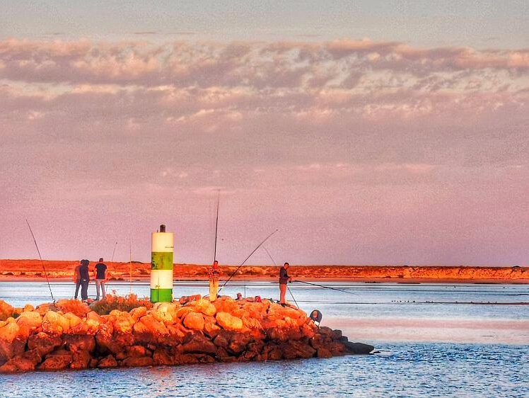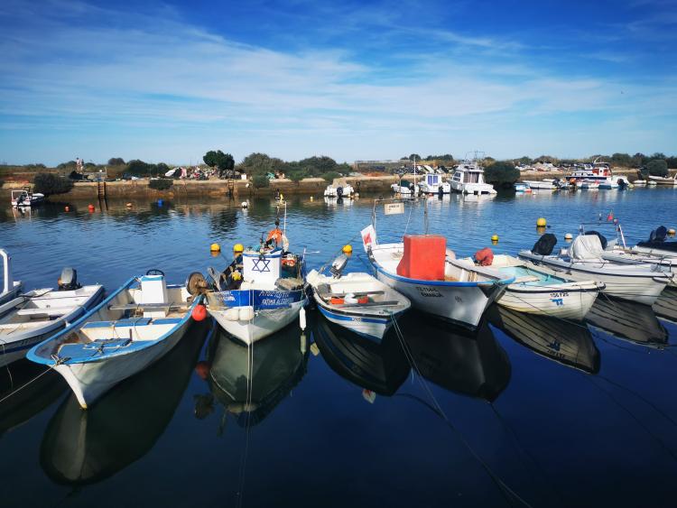 Fuseta liegt eingebettet in den Salinen der Ria Formosa, in denen Flamingos in größeren Gruppen einbeinig im Wasser stehen und an guten Tagen über uns hinweg ziehen, ein Radweg führt von Olhão über Fuseta nach Tavira. Nach Tavira wirst du hie und da gut durchgerüttelt. Nach Olhão ist er durch Schäden derzeit nicht durchgehend nutzbar. In allen drei Orten bringen dich Linienfähren wie Wassertaxis an die vorgelagerten Inseln der Lagune – erst dahiner beginnt das Meer. Tavira ist ein kleines Städtchen, wie gemalt für Touristen, die sich zuweilen auf die Füße treten, Olhão scheint trotz pittoresker Fußgängerzone ein wenig rauer.