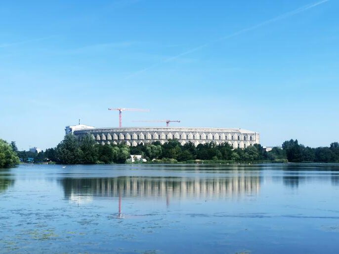 Am folgenden Tag frühstückten wir um die Ecke und fuhren dann mit der Bahn zum Reichsparteitagsgelände. Wir standen im unvollendeten Kongressbau, umrundeten den Dutzendteich und spazierten am derzeit renovierten Zeppelinfeld samt Zeppelintribüne vorbei. Heinz Rudolf Kunze hatte darüber schon 1981 gesungen: