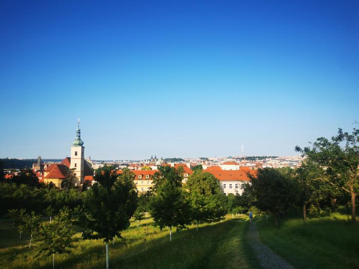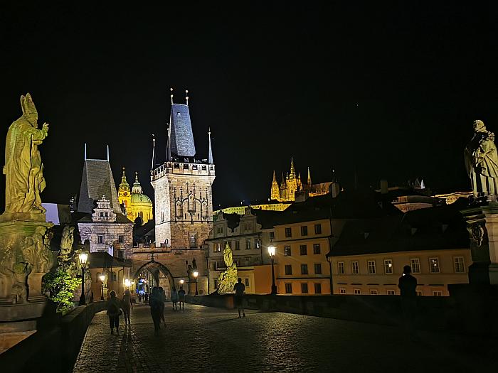 Nach ersten Wegen in Richtung der von Besuchern überquollenen Karlsbrücke und Altstadt nahmen wir eine Straßenbahn und ratterten quer durch die Stadt. In Smichov fanden wir ein ansprechendes Kellerrestaurant und somit erst einmal Ruhe bei Svíčková und Veggieburger. Da der Aufzug auf den Prager Hausberg Petřín bis auf Weiteres geschlossen war, kämpften wir uns anschließend die Treppenstufen nach oben und wanderten durch Park und Kloster bis hin zur Burg, die in den Abendstunden wenig besucht war. Sogar die goldene Gasse zeigte sich nahezu menschenleer. Die gleiche kenntnisreiche Verkäuferin wie im vergangenen Jahr versuchte diesmal erfolglos, mir im Kafka-Häuschen ein Büchlein zu verkaufen. Mit einem Eis in der Hand und später einem alkoholfreien Dosenbier ging ein ereignisreicher Tag zu Ende. Und ein weiterer sollte folgen.