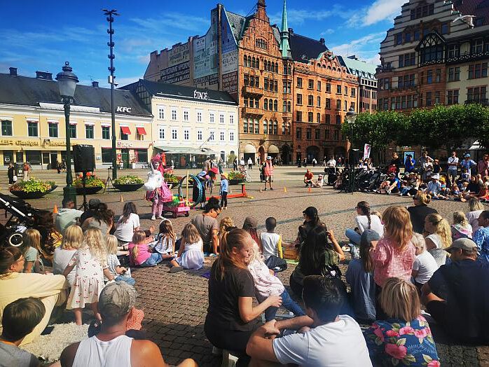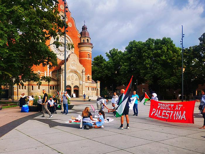 Und so treibe ich wenig später durch Malmös Fußgängerzone. Am großen Platz werden Kinder mit einem Theaterstück bespaßt – Sommertreiben auf den Straßen, die Menschen treiben durch die Gassen, sitzen in Cafés oder essen Eis. Erschreckend teuer ist das Porto für ’ne Postkarte – fast fünf Euro wollen sie hier dafür haben. Weiter hinten sammeln sich Menschen, um für Freiheit für Palästina zu demonstrieren. Teddybären liegen auf einem Tuch, ein Mann bestreicht sie mit roter Farbe. Eine junge Schwedin dekoriert mit einem Kind das Grauen symbolisierende – pittoresk. Durch den Folkets Park wandere ich nach Hause, Kinder spielen – ein städtisches Idyll, in dem Muslime und Schweden und beides in einem friedlich zusammenleben – so will es scheinen. Am Abend verlieren die deutschen Frauen unglücklich in der Verlängerung gegen Spanien, ich kann das Spiel im Fernseher schauen. Es ist der Tag nach Ozzy Osbournes Tod.
