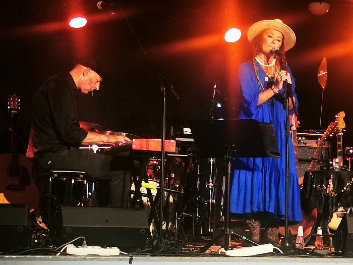 Zuerst betritt die Band die Bühne, dann kommt Sophie in einem blauen Kleid und Cowboystiefeln. Die Musik ist vorwiegend ruhig: Gitarre, Schlagzeug und Bass – von Zeit zu Zeit greift auch Zelmani zur Gitarre. Dreamer, Travelling, Songs aus ihrem letzten Album wie Back to the Sea oder Lake Geneva, dazu Going Home – ein Potpourri aus den letzten 30 Jahren wird unaufgeregt zelebriert, garniert von Ansagen, die – im Gegensatz zum Karlsruher Konzert vor zwei Monaten – diesmal wenig verwunderlich auf Schwedisch sind. Das Publikum goutiert es, ich ebenso. Nach einer Zugabe und 100 Minuten Spielzeit ist der Zauber vorbei. Sophie und die Musiker unterhalten sich mit den Gästen – ich hingegen werfe einen letzten bewundernden Blick auf das Szenario und verlasse das Gelände.