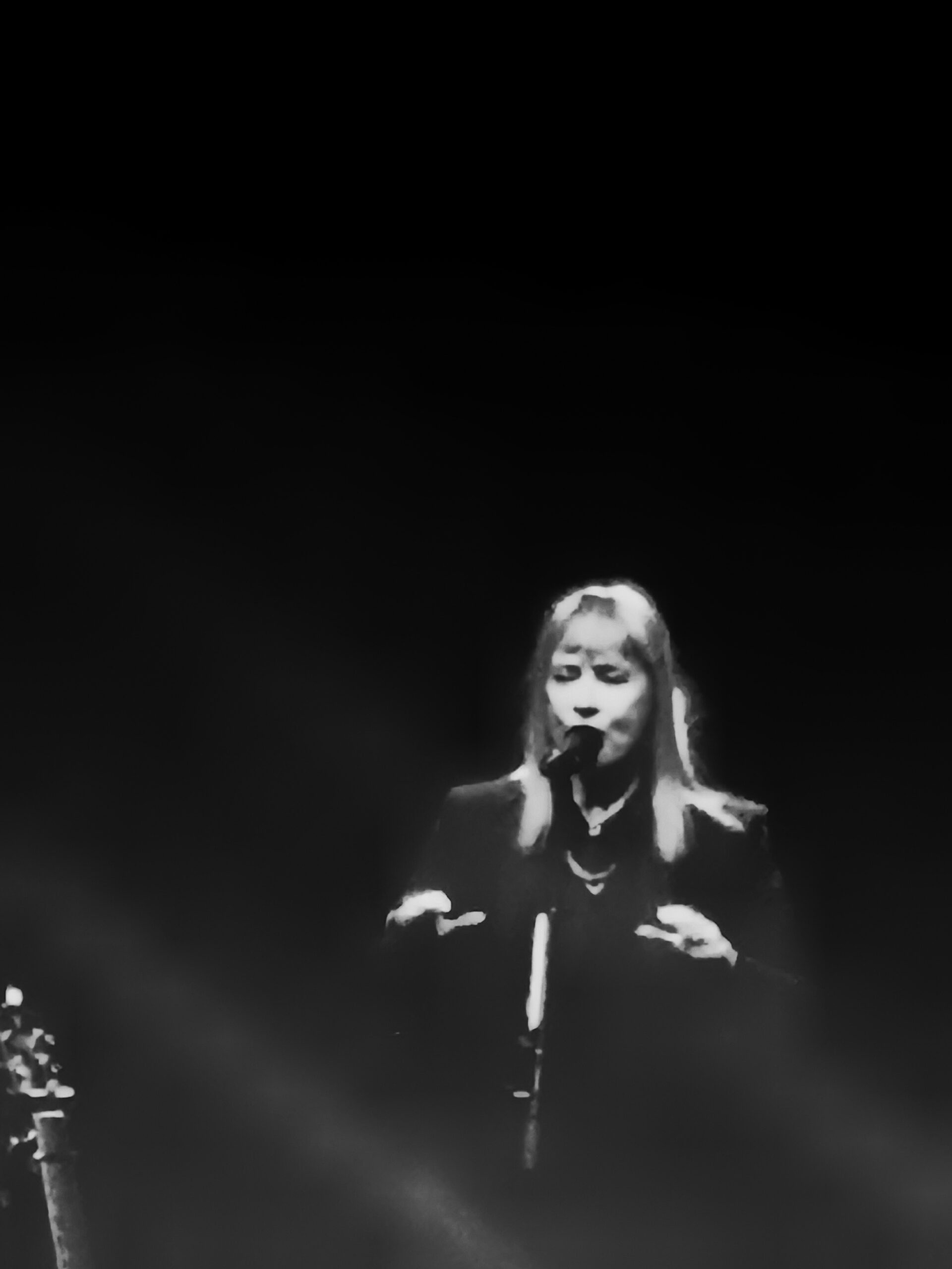 Und sie begann pünktlich. Mein Platz war relativ weit hinten; leider waren die Lichter im Saal außerhalb der Mitte recht hell – das Versinken in der Musik fällt nicht leichter, wenn das schüttere Haar deines Vordermanns in all seinen Details deutlich zu erkennen ist. Als hätte jemand vergessen, das Licht auszumachen. Auch Fotografieren machte wenig Sinn. Ein dokumentarisches Bild. Das war’s.