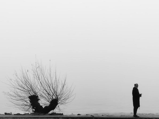Ins Unbekannte hinaus / ins Blaue hinein / auf die Fähre warten / die wir alle nehmen werden / auf den Weg warten / den wir alle gehen werden / ohne Gepäck / ohne eine Spur.