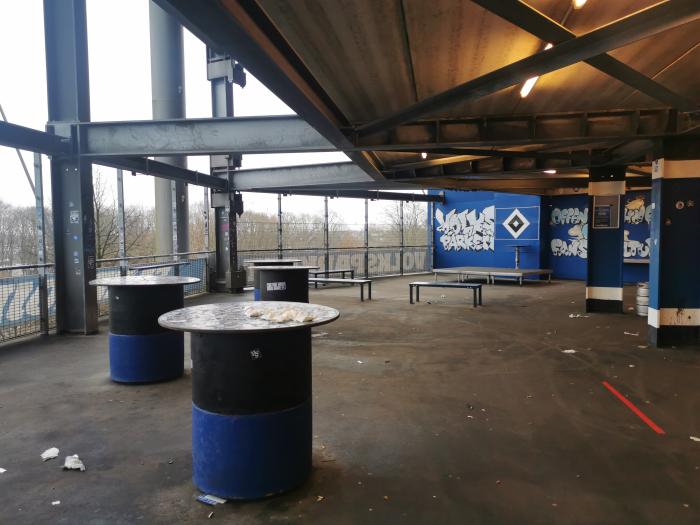 Anschließend kämpften wir uns in den Gastbereich und nahmen unsere Plätze in der fünften Reihe ein. Erstmals seit 2018 kickte die Eintracht wieder beim HSV, und wieder einmal rettete uns der Videobeweis den Arsch. Das vermeintliche 2:1, das von den Hamburgern schon lautstark gefeiert wurde, zählte wegen Abseits nicht; es blieb beim 1:1. Ansonsten war es ein relativ unaufgeregtes Spiel, einzig eine kleine Pyroshow mit ein paar Raketchen illuminierte den Nachmittag. Auch im Stadion wurde Ramazan Avcı gedacht.