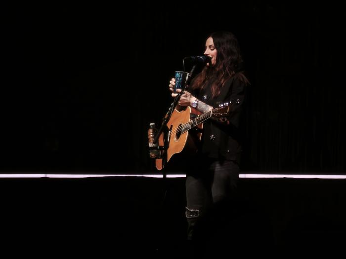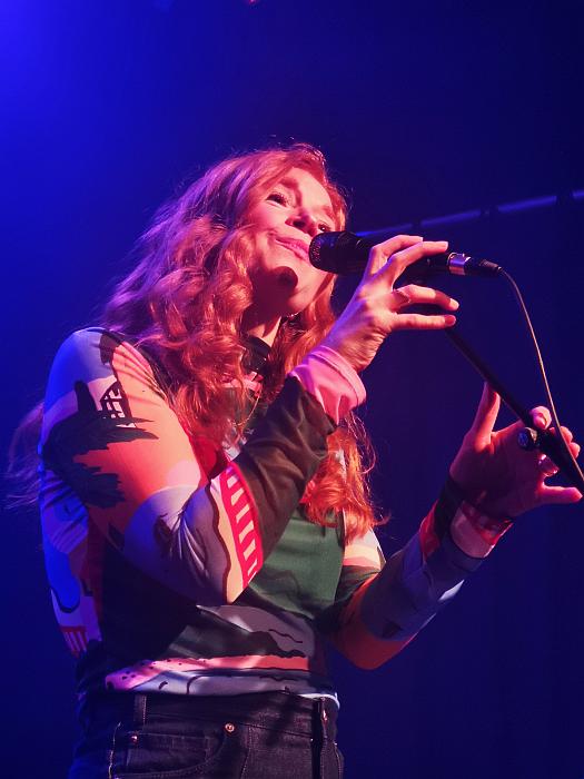 Es war tadellos angerichtet – und zu den Takten des Titelsongs des neuen Albums Is This What You’ve Been Waiting For betraten die Musiker die Bühne. Amy, ganz in Schwarz mit wenigen Glitzermomenten gekleidet, spielte ihre Gitarre, und das Publikum ging vom ersten Moment an mit. Natürlich flogen die Handys in die Höhe – aber durchaus im Rahmen. Und natürlich gibt es immer den einen älteren Herren, der konzentriert mit seinem Telefon filmt, und den anderen, der alles derart verwackelt, dass man sich die Aufnahmen nicht anschauen kann – aber es ging gesittet zu, selten genug. Mit Dream On und The Hudson ging es munter weiter. Mit einem fröhlichen „Guten Abend“ wurden wir begrüßt, anschließend lobte sie den Schlachthof in allen Bereichen – es war das erste Mal, dass sie hier konzertierte. Vor ein paar Jahren sah ich sie in der Alten Oper; die war damals bestuhlt und nicht wirklich prädestiniert für diese Art von Musik, die mindestens zum Mitwippen animiert.