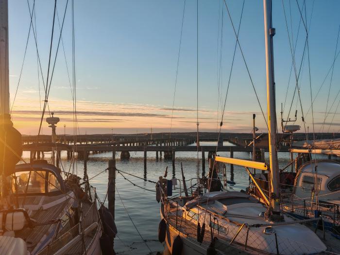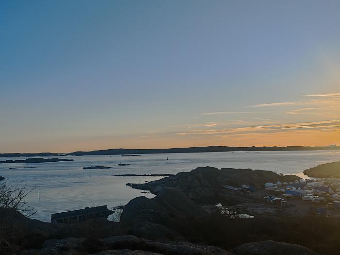 Das Gute hier ist, dass die Fähren in die Schärengärten auch in den Tagestickets enthalten sind. Diese Boote fahren von Saltholmen ab, eine 35-minütige Busfahrt von der City entfernt. Nach dem Einchecken in der Unterkunft laufe ich durch mein Viertel, das zunächst aus vereinzelten Holzhäusern besteht, bis ich nach einer guten halben Stunde am Stadion lande. Dann bringt mich eine Bahn wieder zurück in die Stadt. Simone steigt später zu mir in die Straßenbahn und wir fahren am großen Friedhof und Villengegenden vorbei nach Saltholmen an den Fähranleger. Die Sonne schickt sich an, langsam zu versinken, und als wir an den im Hafen schaukelnden Bootchen vorbeimarschieren, höre ich hinter mir „Gude Beve“. Florian hatte die gleiche Idee wie wir und gemeinsam klettern wir über die Felsen und blicken über den Kattegat in den Sonnenuntergang. Morgen plane ich, erneut hier aufzuschlagen, um mit der Fähre auf eine der Inseln zu tuckern.