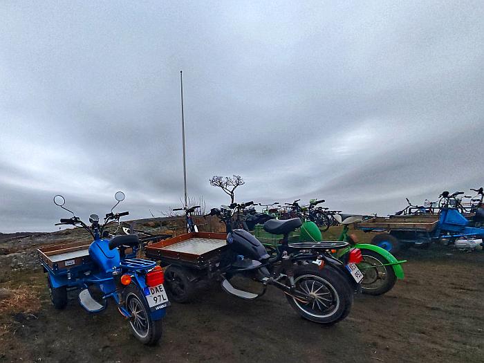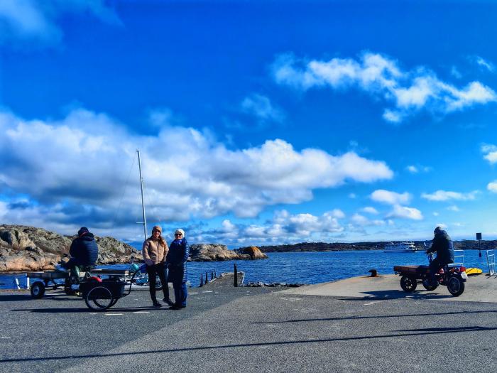 Am Pier in Brännö warten wie schon in Asperö vereinzelte Lastenmopeds – auch hier sind Autos nicht erlaubt. Eine zwei Kilometer lange Straße verbindet die Anlegestelle Brännö Husvik mit dem Ort und der Haltestelle im Norden.