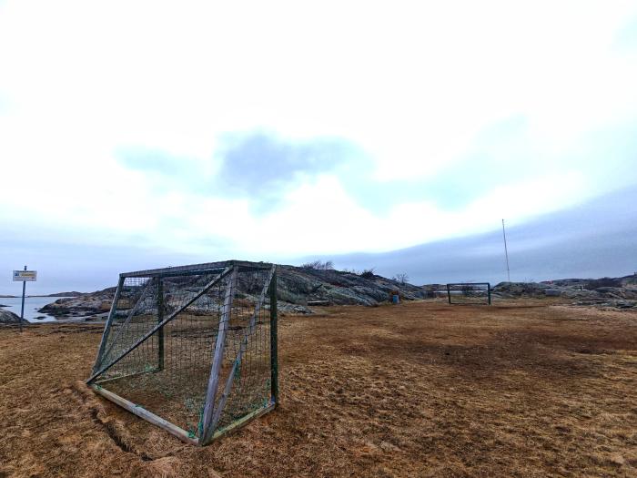 Ich durchwandere die Insel, die bewohnter und größer ist als Asperö. Die Briefkästen sind individuell gestaltet, die Häuser aus Holz, die Menschen sind mit dem Rad oder ihren Lastenmopeds unterwegs. Andere Motorräder sind auf der Insel nicht gestattet – und ich bin ein bisschen verliebt in die Flakmopeds, die zum Teil schon viele Jahre auf dem Buckel haben. Als ich auf der anderen Seite ankomme, habe ich die Qual der Wahl: Entweder nehme ich die nächste Fähre oder dann erst wieder eine in drei Stunden. Da ich auf drei Stunden auf der Insel heute keinen Nerv habe, drehe ich noch eine kleine Runde in der Stille, komme an einem idyllischen Fußballplatz mit Meerblick vorbei und kehre zurück ans Wartehäuschen in Brännö Rödsten.