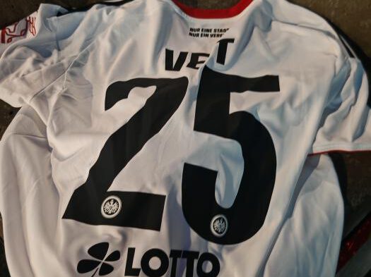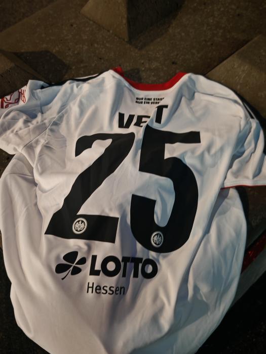 Die Frauen traten total geknickt vor unsere Kurve und wurden wieder aufgepäppelt. Zum Dank flogen die Trikots zu den Fans – und ich hatte Glück und konnte das von Jella Veit mit der Nummer 25 fangen.