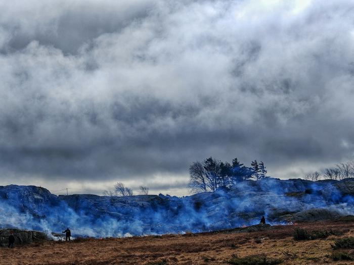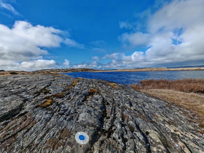Diesmal habe ich mehr Zeit eingeplant, wandere ins Naturschutzgebiet und erreiche über eine kleine Brücke das Naturreservat Galterö. Kaum jemand ist hier unterwegs, herrliche Blicke bieten sich über die Insel, aber auch über die Schärengärten. Ein kontrolliertes Flächenfeuer lässt Rauchschwaden über die Insel ziehen. Weiße Kreise mit einem blauen Punkt in der Mitte weisen den Weg. Ich laufe über Felsen und Steine, über Bohlen und feste Wege, passiere einen toten Schwan, historische Grabplätze und eine Feuerstelle. Oberhalb einer Lagune geht es in militärisches Sperrgebiet – einen Weg, den ich tunlichst meide. Ich umrunde die Lagune und wandere wieder über die Brücke und Treppen zurück nach Brännö. Dort spaziere ich zum Anleger Husvik, nehme die pünktlich eintuckernde Fähre und gehe ans Oberdeck. Bei strahlendem Sonnenschein steuern wir noch mehrere Nachbarinseln an, bis wir wieder in Saltholmen landen.