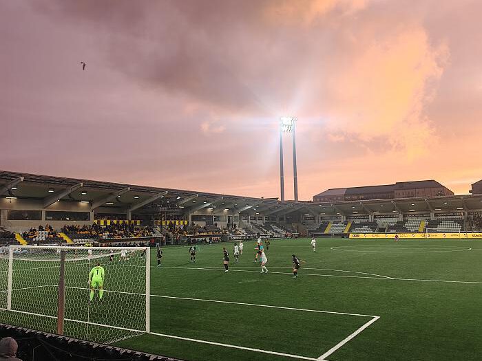 Die zweite Hälfte bietet ein ähnliches Bild. Zwar bricht der graue Himmel auf und wir blicken in den Sonnenuntergang, während weiterhin Möwen über das Spielfeld kreisen – die Eintracht belagert durchgehend Häckens Strafraum, findet aber kein Durchkommen. Ich wundere mich, dass bei den vielen Ecken die kopfballstarke Ilestedt nicht eingewechselt wird und später Raso den Vorzug vor Chiba bekommt – aber etliche Wechsel stellten mich auch schon bei den Spielen zuvor vor ein Rätsel.