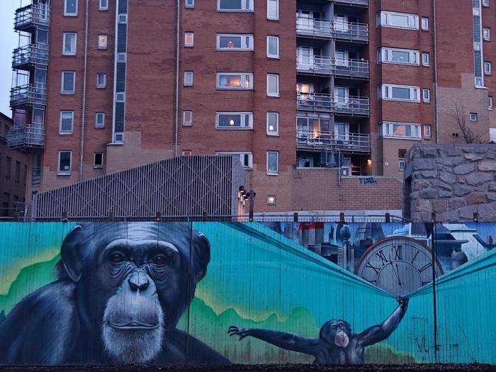 Die folgenden beiden Tage stehen im Schatten der Museen. Ihr erinnert euch, ich hatte mir ja die Jahreskarte besorgt. Erst geht es ins Seefahrtsmuseum und ins Aquarium, dann fotografiere ich endlich einige der Bauzaungraffitis, die ich immer wieder aus der Bahn gesehen hatte, um anschließend das Stadtmuseum zu entern, welches sich derzeit völlig hinter abgehängten Fassaden versteckt. Beide Museen lohnen sich durchaus. So erfährst du beispielsweise, dass die heute so pittoreske Haga einst als günstige Wohnungen für Arbeiter gebaut wurde und große Teile bis in die 1980er-Jahre gegen den Widerstand der Bevölkerung abgerissen oder kernsaniert wurden.