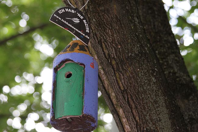 Dem aufmerksamen Betrachter – und nur diesem – fällt im Oeder Weg seit einigen Wochen möglicherweise das ein oder andere Vogelhäuschen auf, welches in luftiger Höhe an einer Kastanie hängt. Buntbemalt harren die hölzernen Kistchen ihrer Gäste, ein Schild weist darauf hin, dass hier jemand ne Meise hat. Aha, Meisen sollen hier also den Sommer verbringen. Doch wozu?