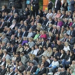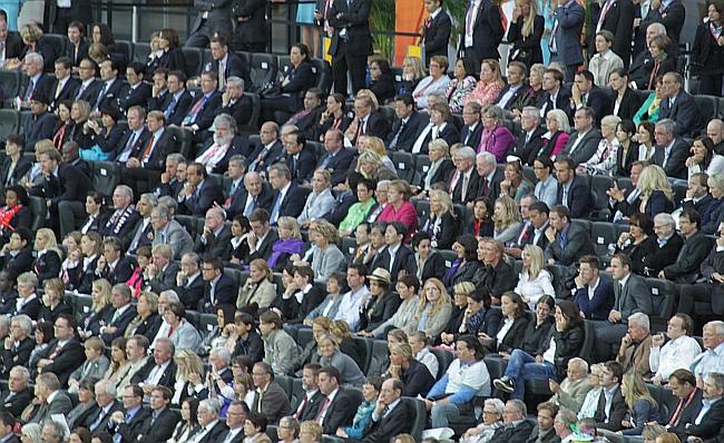 Ich holte meine Kamera hervor und begann zu knipsen, meine Sitznachbarin meinte daraufhin, dass auf der Haupttribüne die Bundeskanzlerin sitzen würde – und tatsächlich, durch das Tele erkannte ich sie. Neben Theo Zwanziger saß sie, dem Mann der noch im vorletzten Jahrtausend den Frauenfußball erfunden hatte. Es ist ganz witzig, die Ränge durch das Tele zu beobachten, auch wenn es keineswegs ein Profigerät ist. Aber es ist unseres. Und wir erkannten deutlich, was auch mit bloßem Auge zu sehen war: Bunt gemischt hockten Japaner, Amerikaner und Sympathisanten jeglicher Couleur nebeneinander und warteten auf die LaOla, das Erlebnis oder auf Fußball. Weiter unten könnt ihr das Bild der Haupttribüne sehen – schaut mal genau hin, und sagt mir, wen ihr alles entdecken könnt. Auf Wunsch kann ich das Suchbild auch gerne vergrößern.
