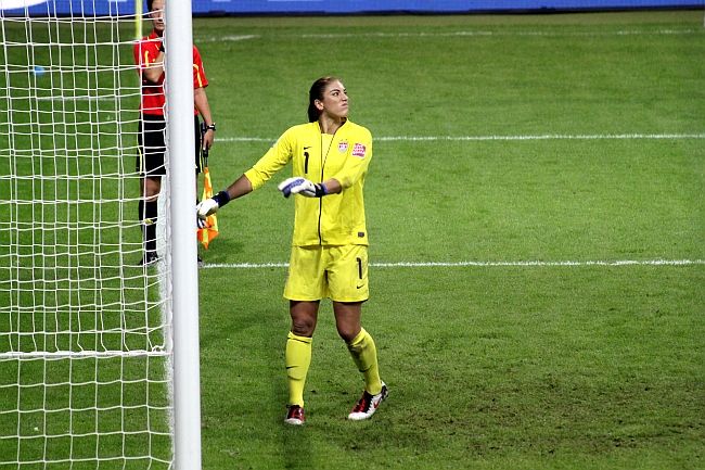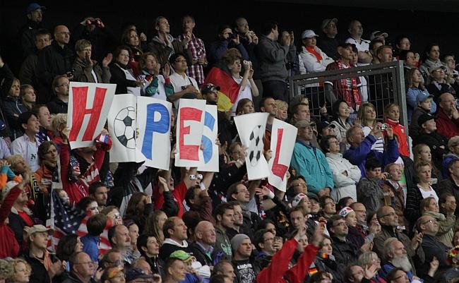 Nippon – USA, Nippon – USA hallte es auch nach dem Seitenwechsel lautstark von den Rängen. Nun spielte Hope Solo auf unserer Seite und ich knipste munter drauf los; viel beschäftigt war sie jedoch auch in den kommenden Minuten nicht, im Gegenteil: In der 69. Minute erzielte die zur Pause eingewechselte Alex Morgan die längst verdiente Führung der US-Amerikanerinnen. Doch wer geglaubt hatte, die Partie sei entschieden, wurde eines Besseren belehrt. Zäh und beständig kämpften sich die Japanerinnen ins Spiel zurück und wurden in der 81. Minute durch den Ausgleichstreffer von Aya Miyama belohnt. Verlängerung.