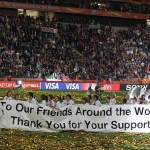 Wir blieben noch eine ganze Weile und hörten Donnerschläge, die wir zunächst nicht genau zuordnen konnten. Der Videowürfel zeigte ein Feuerwerk und wir realisierten langsam, dass dieses Feuerwerk über dem Stadion gezündet wurde, die Zuschauer konnten ob des geschlossenen Daches den Zauber nur auf dem Videowürfel sehen. Toll. Ganz nebenbei sind brennende Leuchtmittel beim Herrenfußball Ausdruck von Randale und Gewalt; ganz offiziell gezündet jedoch ein Zeichen ausgelassener Freude. Nun denn, absurd ist vieles – schön bunt jedoch war der Abend und ob des Spiels dramatisch zugleich. Ein Erlebnis allemal und nach einem letzten Blick in die Arena wanderten wir ins Museum der Frankfurter Eintracht, um später dort noch ein Schöppchen zu trinken. Auf den Weltmeister, auf uns und auf das Museum, das uns die schöne Möglichkeit gegeben hat, hautnah bei der WM dabei zu sein. Danke dafür und Glückwunsch nach Japan.
