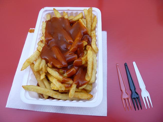 schnellinger, die pommesgabeln: gut beobachtet :-) den punktabzug habe ich berücksichtigt; allerdings war die fotografierte variante zum mitnehmen, vor ort wurde die mahlzeit etwas schöner präsentiert.