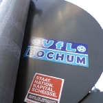 Mit einem Schöppchen in der Hand wanderten wir gemächlich zurück in Richtung Stadion, dessen Flutlichtmasten in den glasblauen Himmel glänzten. Jede Menge Frankfurter tummelten sich schon vor dem Gästeeingang, die meisten aber standen … im Stau. Auch unsere Karten waren noch unterwegs, während wir erfuhren, dass der Bochumer Hauptbahnhof wegen einer Bombenalarms derzeit gesperrt wurde. Dies alles führte dazu, dass der Anpfiff kurzerhand um 30 Minuten nach hinten verlegt wurde – auch wenn sich der Grund des Alarms später als ein herrenloser Teppich samt Dunstabzugshaube heraus stellte. Wobei sich die Dunstabzugshaube final als Friteuse erwies.