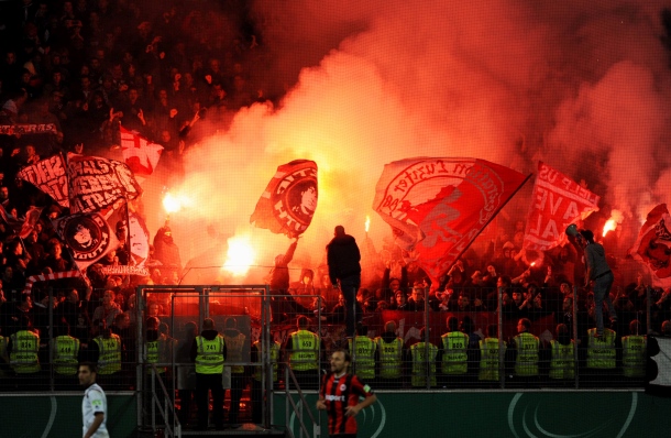 Dumm nur, wenn die gezeigten Fans nachweislich aus Kaiserslautern kommen. Wie man unschwer an der Fahne der Generation Luzifer erkennen kann: Hier der Screenshot des Bildes, etwas größer: