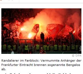 Fußballfans, Krawall und mediale Berichterstattung – ein weites Feld. Nach der gestrigen Zusammenkunft des Vorstandes der Frankfurter Eintracht mit dem Innenminister Boris Rhein schlagen die Wellen hoch. Auch die FAZ nimmt sich des Themas an. Hochwertig recherchiert. Ein Foto, welches Bengalos im Frankfurter Stadion zeigt wird untertitelt: Randalierer im Fanblock: Vermummte Anhänger der Frankfurter Eintracht brennen sogenannte Bengalos ab.
