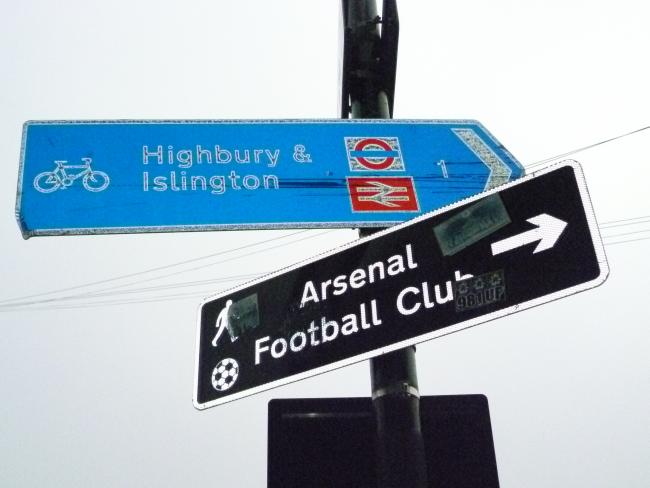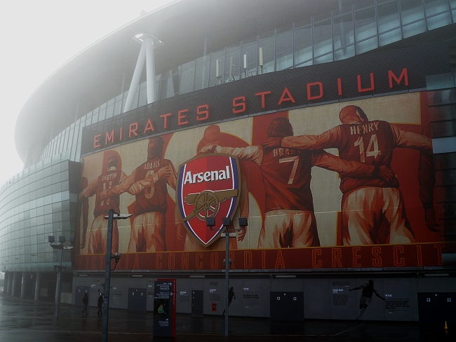 Da Frühstück nur bis um viertel nach neun serviert wurde, schälten wir uns nach knapp fünf Stunden Schlaf aus dem Bett und schlappten in die Dusche. Mit hängenden Augenlidern saßen wir bei Kaffee, Spiegeleiern, Cornflakes und Toast im Frühstücksraum, die Worte der freundlichen Rumänin glitten an uns herunter, während wir uns gedanklich auf den Tag vorbereiteten. Da Andi und Arne das Hotel früh verlassen mussten, trafen wir uns gegen zehn vor dem Domizil der beiden und schlenderten müde Richtung Hyde Park. Noch war der Sonntag leicht neblig, in und außerhalb von uns und so nahmen wir die U-Bahn Richtung Arsenal, um einen Blick auf das dortige Stadion und das angeschlossene Museum zu werfen. Neun Stationen dauerte die Fahrt und wir waren beileibe nicht alleine. Arsenal heißt die Haltestelle am Stadion, Schilder wiesen schon beim Ausstieg darauf hin, dass bei internationalen Spielen der Genuss von Bier vom Weg der Haltestelle zum Stadion verboten sei, doch auch heute stand uns der Sinn nicht wirklich danach. Ein Aufkleber der Dortmunder Ultras klebte bereits auf der Strecke, wundersamer Weise gesellte sich noch einer der Frankfurter Eintracht dazu.