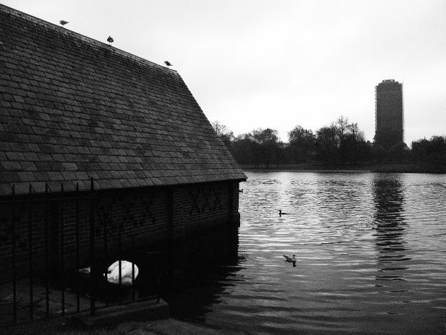 Den Blick voraus gings zum Hyde Park, in dem nicht allzuviel los war. Wir spazierten an der Serpentine entlang, vereinzelt wurden die Wasservögel gefüttert, die ein mords Theater machten, neblig ruhig zogen wir unsere Bahn, ab und an wurden Hunde ausgeführt, ab und an joggte ein Londoner seines Wegs, während unter einem Buschrondell ein Obdachloser die Nacht verbracht hatte und noch schlief. Weitläufig streckte sich der Park eher unspektakulär bis zur Brücke, an der wir Richtung Speakers Corner abknickten, der von allen guten Geistern verlassen eher ein Ort der Stille schien. Über die Oxford Street erreichten wir die Carnaby Street, erinnerten uns an Swinging London – wir nuckelten damals allerdings noch am Fläschchen – und durchquerten Soho diesmal im Hellen. Wir guckten in einzelnen Läden nach hübschen Kleidungsstücken für Pia und wurden sogar hie und da fündig. Dann zogen wir erneut durch Chinatown, kauften uns in Covent Garden eine riesige Portion Fish ’n‘ Chips und genossen das traditionelle englische Essen gemeinsam mit einer Schar Tauben, die schmerzfrei auf ihren Anteil hoffte. Bis ins British Museum schafften wir es dann, bewunderten die mächtige Halle, ägyptische Mumien und Uhren aus aller Welt und aus allen Zeiten, bis die Zeit drängte und wir nach einem Kaffee in Holborn über den Trafalgar Square wieder im St James Park landeten. Die grauen Eichhörnchen kamen neugierig angeflitzt und fraßen anderen Besuchern aus der Hand, wir aber hatten nichts für sie übrig und marschierten über die Buckingham Place Road Richtung Hotel; entstanden aber zuvor noch einige Souvenirs, wie es sich für ordentliche Touristen gehört. Wenig später am Eccleston Square standen meine Stiefel noch am gleichen Fleck, allerdings hatte sie jemand in der Hand gehalten, die Schuhe standen nun mit der Spitze nach innen und somit war mein Geist gebannt und ich konnte in Frieden fahren.