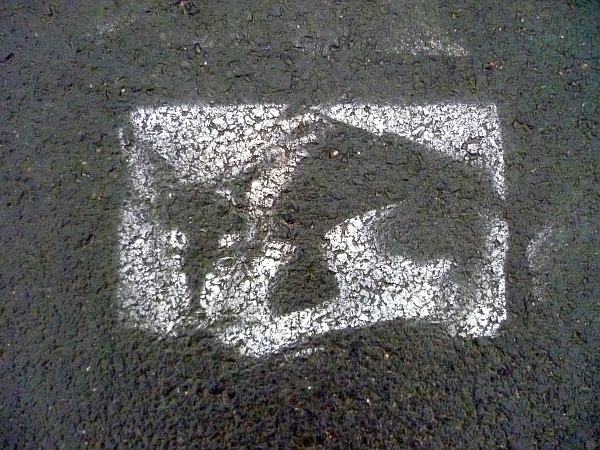 mich erinnert das auf die Straße gesprühte motiv vom gesicht her an einen fuchs. die banane hab ich neulich in speyer gesehen. dom und banane. speyer. die kleine ausstellung ging völlig an mir vorüber. wie so vieles …