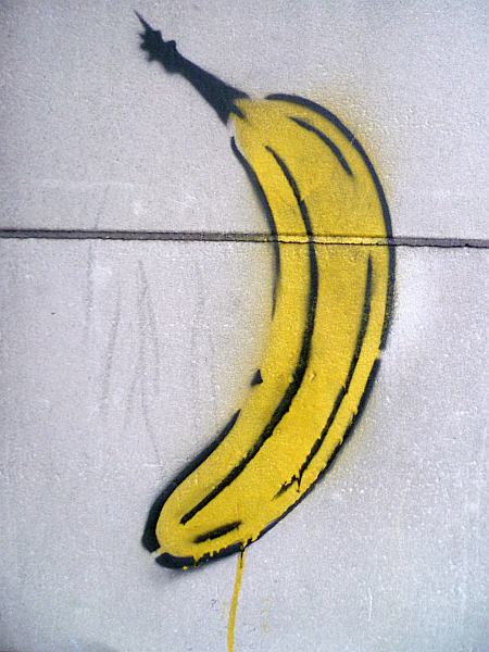 die banane ist immer noch in ffm anzutreffen, z.b. an der schirn, gegenüber vom mmk und weiteren galerien in der braubachstraße. im september (oder oktober?) gab es sogar eine kleine ausstellung in ffm. was ist denn das motiv in der 2.reihe ganz rechts? irgendwie kann ich das nicht erkennen..?