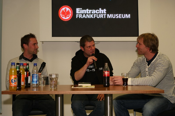 Unter tosendem Applaus endete ein überaus interessanter Abend im Eintracht Museum, wo Ansgar Brinkmann noch Hunderte Schwätzchen halten durfte und sich die Finger für Autogramme wund schrieb. Natürlich in seiner Biographie, in der noch viel mehr bunte Geschichten aus seinem bewegtem Fußballerleben niedergeschrieben sind. Was nicht darin steht ist die die simple Tatsache, dass Brinkmann niemals gegen Eintracht Frankfurt verloren hat. Nicht mit Bayer Uerdingen, nicht mit Gütersloh, mit Bielefeld und auch nicht mit Dresden. Das ist ein Ding.