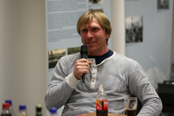 Proppevoll wars im Museum der Frankfurter Eintracht, als Ansgar Brinkmann sich und die mit Bastian Henrichs gemeinsam produzierte Biografie Der weiße Brasilianer vorstellte. Der weiße Brasilianer – ein Begriff, den Trainer Rolf Schafstall einst geprägt hat, als er den jungen Brinkmann in Osnabrück trainierte und der Ansgar Brinkmann bis heute kennzeichnet; technisch filigran, zuweilen flatterhaft und dem Ball stets in großer Zuneigung begegnend – so irrlichterte der Blondschopf zwischen 1987 und 2007 durch die Ligen und wechselte in dieser Zeit 14 Mal den Verein; für den VfL Osnabrück, den FC Gütersloh und Preußen Münster spielte er gleich mehrmals. Und er trainierte unter insgesamt 38 verschiedenen Übungsleitern, darunter Benno Möhlmann, der ihm nicht wirklich übelnahm, dass er schon mal noch kurz vor dem Spiel Pommes in sich hinein schaufelte.