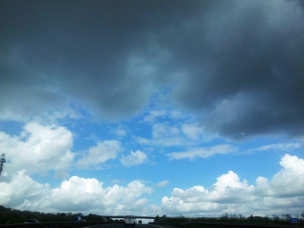 Wir verließen Hessen, tauchten ein in Rheinland Pfalz und landeten bald in Holland. Besser in NordrheinWestfalen; die Verkehrsschilder entlockten uns ein herzhaftes Scheiß Fortuna, Scheiß Fortuna Düsseldorf, die Sonne blinzelte in den Tag, wir überquerten den Rhein, entdeckten einen norwegischen LKW mit dem schönen Firmennamen Toten-Transport, blauer Wolkenhimmel, 13:14 Uhr: Parkplatz, strahlende Sonne – dann Aachen.