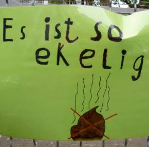 Ich habe mich dann zwischenzeitlich mal schlau gemacht – und konnte ihm durchaus Hoffnung machen. Schland bekommt man zwar nie ganz los, aber es legt sich mit der Zeit. Meist tritt es alle zwei bis vier Jahre schubweise auf, fängt fast nichtig an und bricht im schlimmsten Fall vier Wochen später völlig aus. Die Menschen sind nicht wieder zu erkennen, Mützenzwang, Hupzwang, Das-ist-so-geil-Schreien – alle Symptome, die mein entfernter Bekannter an den Tag gelegt hatte, brechen bis zur völligen Selbstentfremdung völlig durch – doch es legt sich je nach Umstand mit einem Schlag wieder. Schon Anfang Juli hat sich Schland bei den meisten wieder beruhigt. Nur die Patienten, die sich ein ganz mieses Schland eingefangen haben, schleppen sich mit Schland durch den Winter. Tiefgreifende Persönlichkeitsstörungen sind dann die Folge, die Personen sind mit normalen Heilungsmethoden nicht mehr erreich- oder therapierbar. Meist rotten sie sich in kleinen Gruppen zusammen und reden gemeinsam wirres Zeug. Schulmedizin aber auch alternative Methoden sind an Winterschland bislang gescheitert. Hardliner fordern ein Verbot, aber das wäre genau so albern, als würde man Husten verbieten schrieb die Frankfurter Rundschau schon 2006.