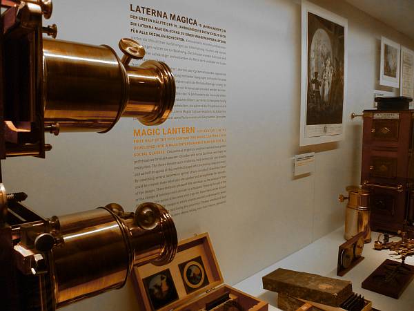 Wer noch mehr Zeit hat, lässt sich durch die Dauerausstellung treiben. In der ersten Etage befinden wir uns in der Entwicklungsgeschichte des Films. Zeichnungen, Illusionen, Anamorphosen, Camera Obscura oder Laterna Magica – die Vorläufer des Filmes werden uns anhand unzähliger Exponate, welche zum Teil sogar bespielbar sind, näher gebracht. Und mit einem Mal fühlen wir uns in eine Zeit versetzt, in der das Staunen noch eine Heimat hatte. Ein Kinosäälchen zeigt uns die verschiedensten bewegten Bilder bevor wir in die zweite Etage wandern – und uns damit der Gegenwart nähern.