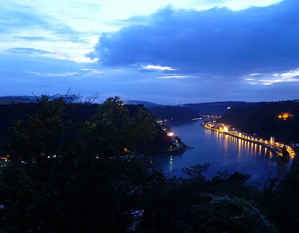 Pia und ich wanderten vor dem letzten Lied nach oben, betrachteten das Geschehen von einem erhabenen Standpunkt und verabschiedeten uns dann vom Gelände, derweil die Zugabe in den letzten Zügen lag. Mit der Musik von New Model Army kraxelten wir die Lorelei hinab. Dunkel wars geworden und mit einem Taschenlämpchen leuchteten wir uns den Weg, der steil und teils rutschig war. Am Rhein parkte noch unser Golf, der auch sofort ansprang und alsbald rollten wir am mächtigen Fluß entlang Richtung Heimat. Ob die Saisoneröffnung wohl ins Wasser gefallen war?